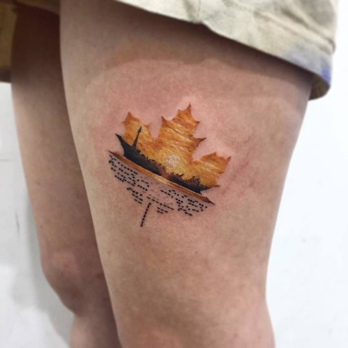 단풍잎타투를 새김에 있어 꼭 캐나다 사람일 필요도 없고, 단풍잎의 고전적인 상징적 의미를 고려할 필요는 없으며, 여러분은 단풍잎의 아름다운 디자인을 위해 단풍잎 문신을 간단히 할 수 있고 그 안에 여러분만의 상징성을 넣을 수 있다.