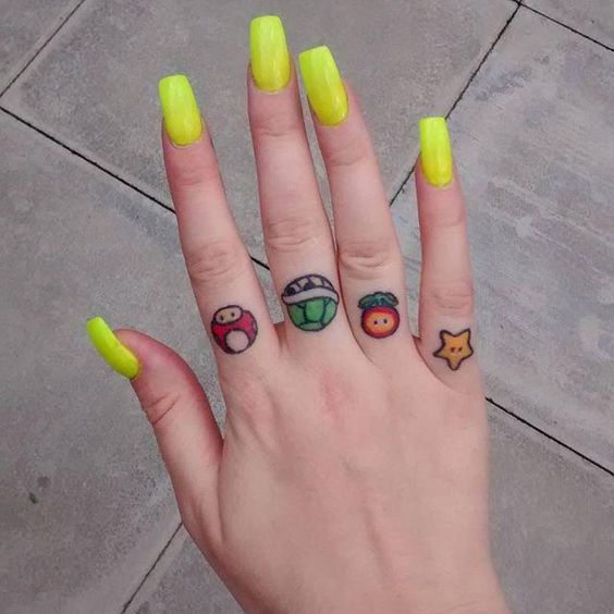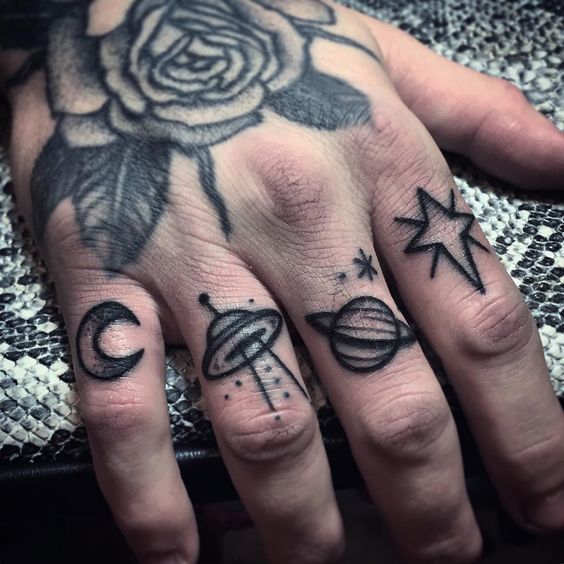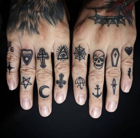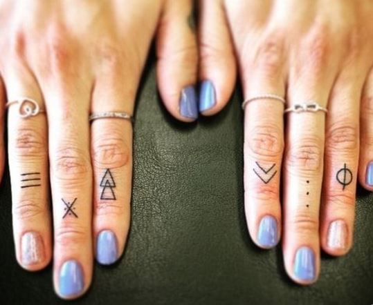 손가락의 타투는 작은 아이콘같은 이미지도 좋고, 레터링으로 한글자씩 새기는 것도 멋있습니다.
