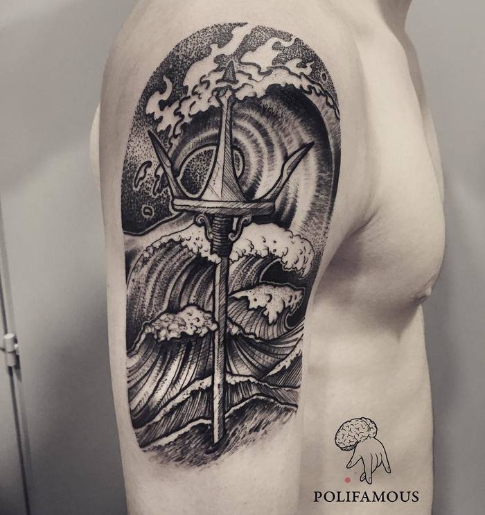 트라이던트 삼지창모양의 타투 디자인은 보통 신들의 힘과 관련이 있다.