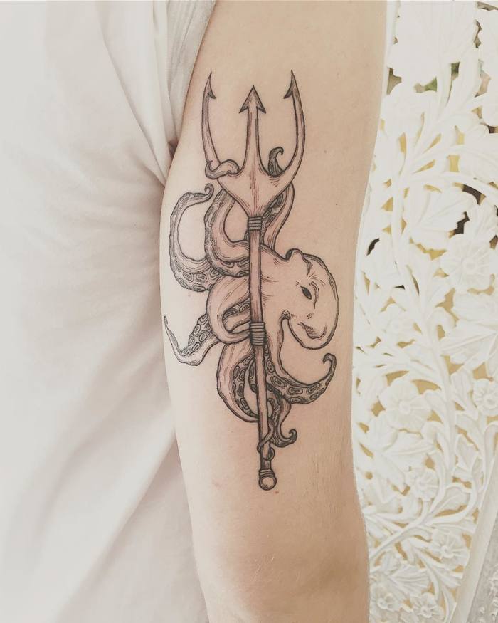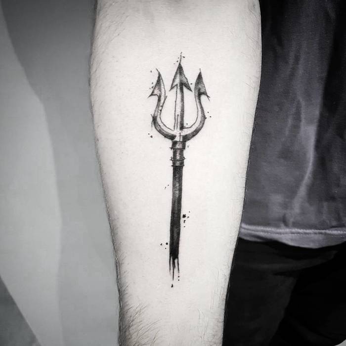 삼지창 문신의 의미는 신들의 미덕과 연결되어 마법의 힘, 지혜, 지배력을 상징한다.
