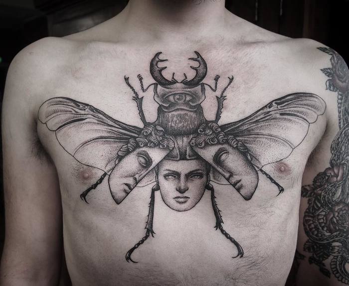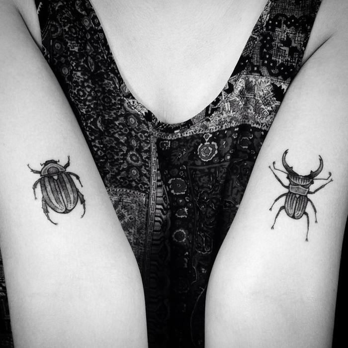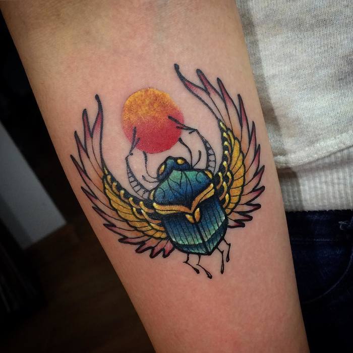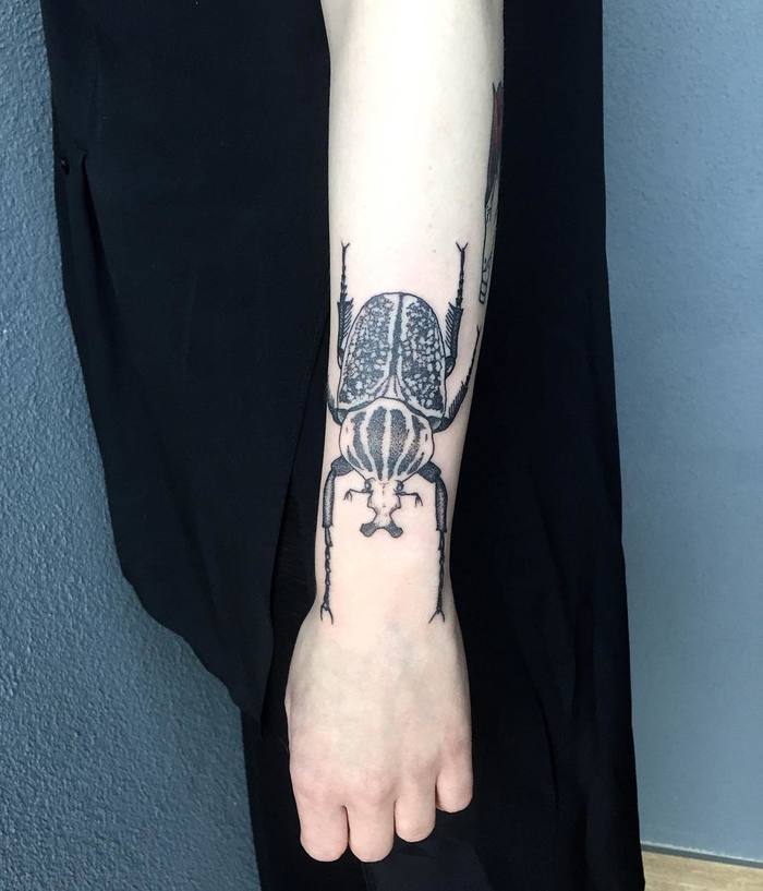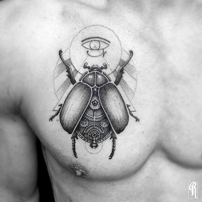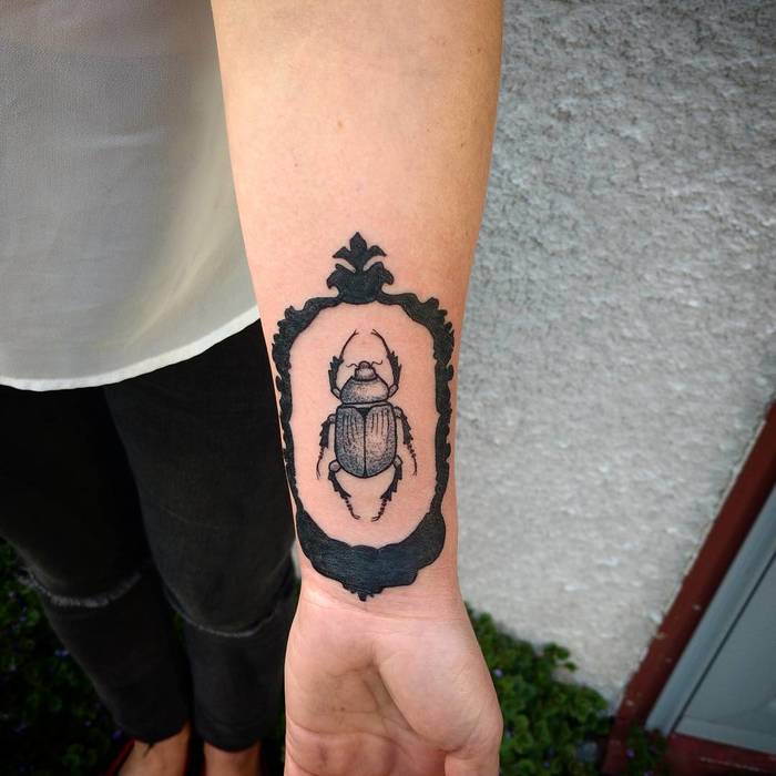 피부에 새겨진 딱정벌레 타투는 영성과 관련이 있지만 힘, 고귀함, 창조성, 부활, 변성, 운과도 관련이 있다.