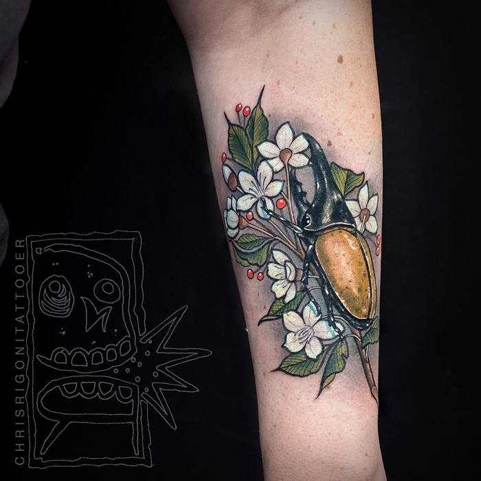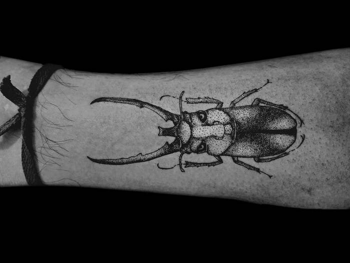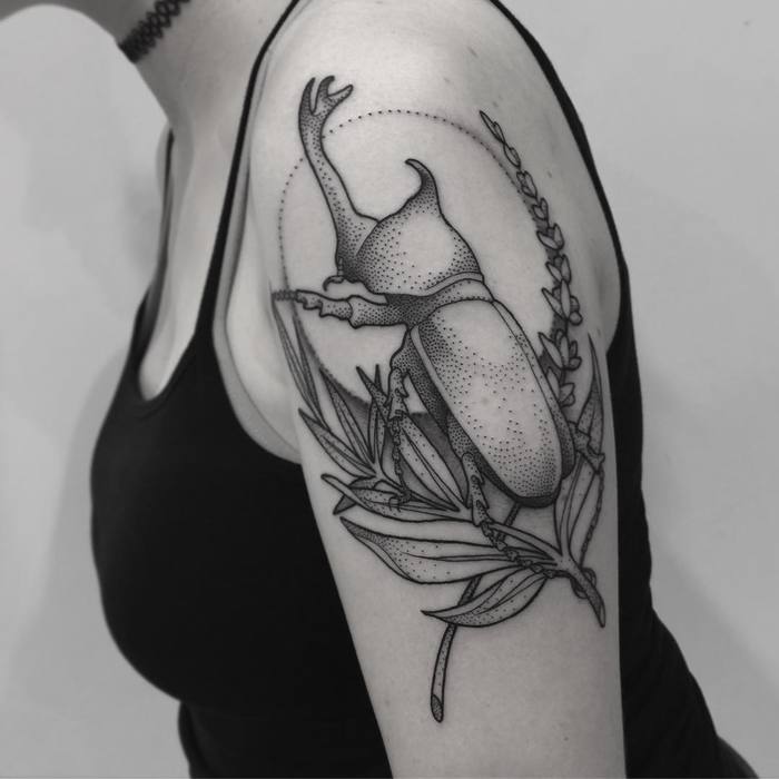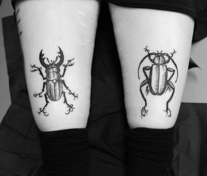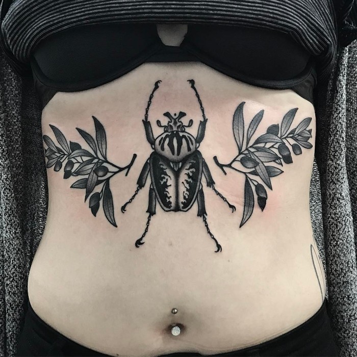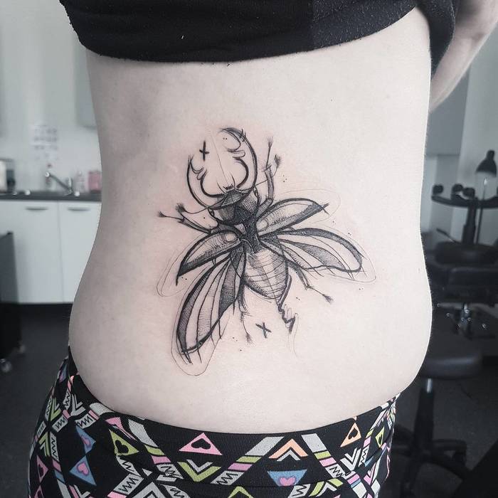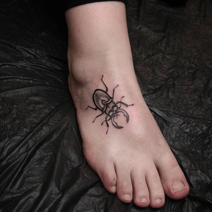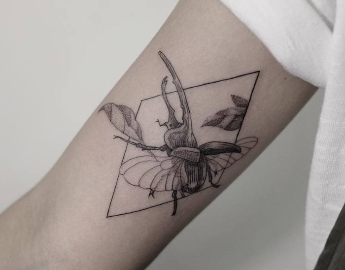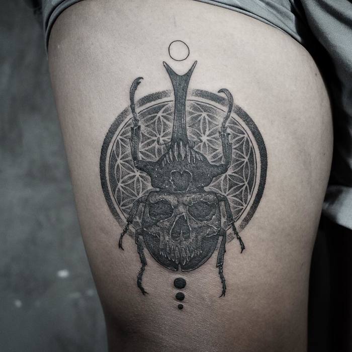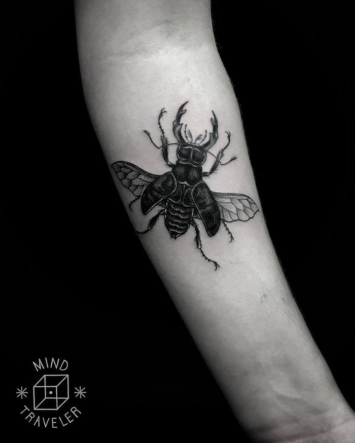 딱정벌레 타투 디자인은 매우 인기 있고 종종 정신적인 의미와 연관되어 있는 경우가 많다.