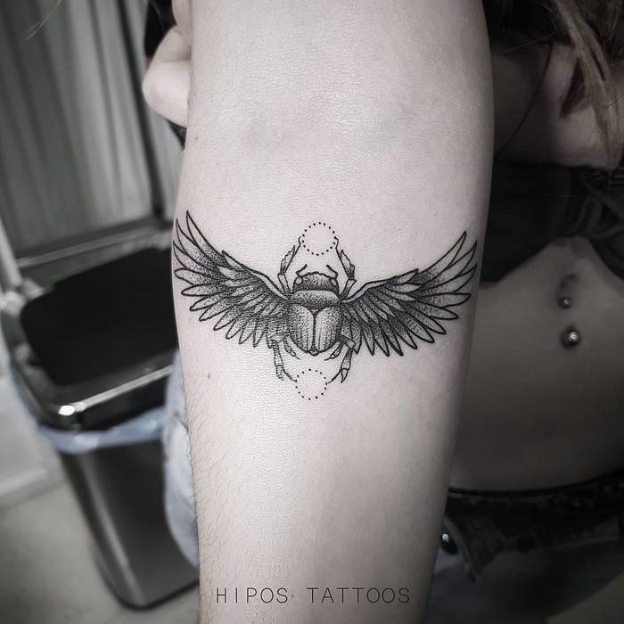 가장 인기 있는 딱정벌레 타투는 고대 이집트의 강력한 상징인 스카라브 딱정벌레로, 신과 연관되어 있다.