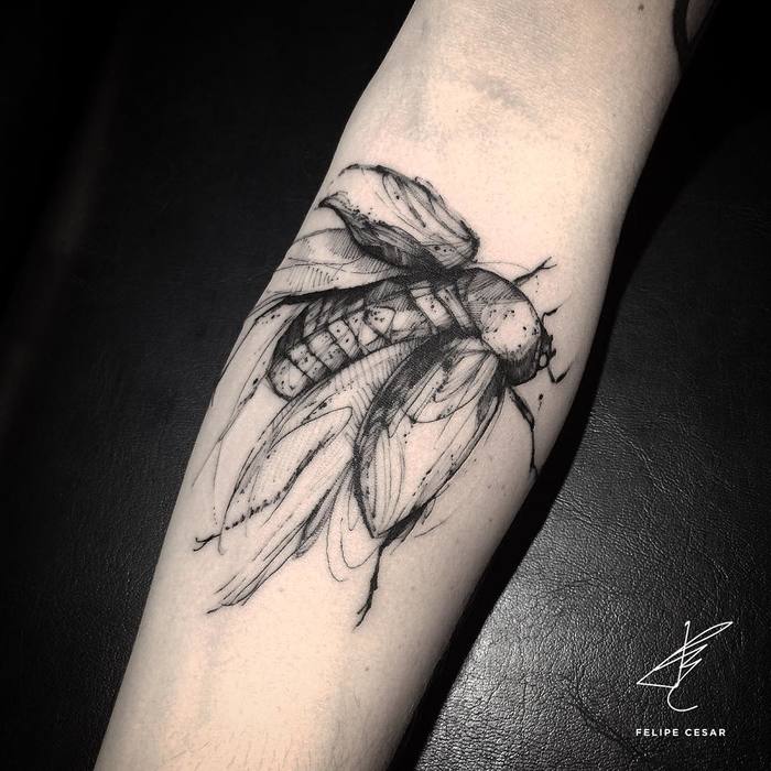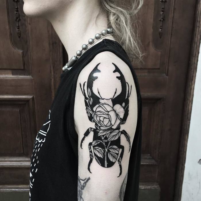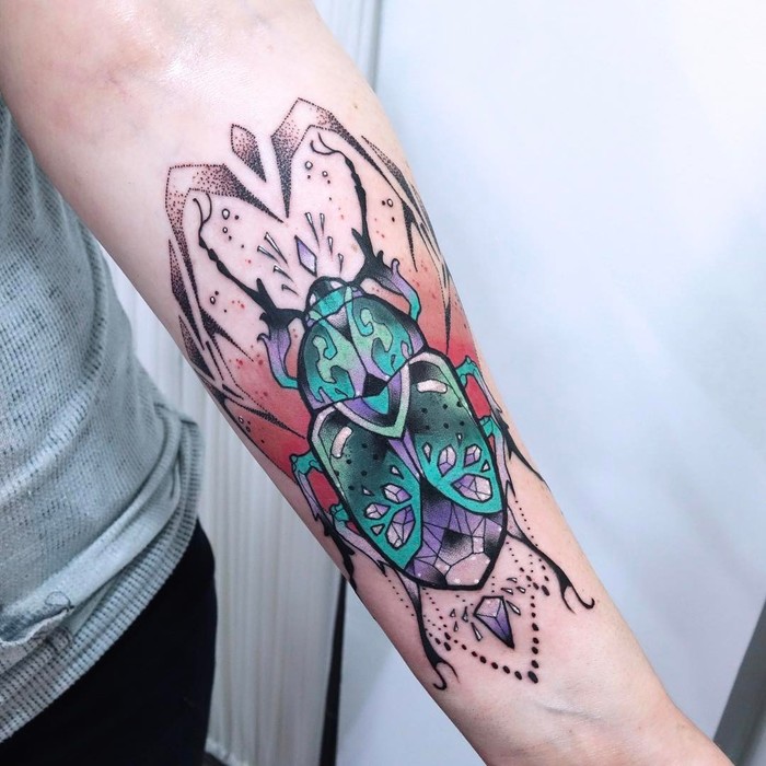 딱정벌레 타투 디자인은 매우 인기 있고 종종 정신적인 의미와 연관되어 있는 경우가 많다.