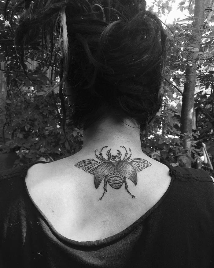 피부에 새겨진 딱정벌레 타투는 영성과 관련이 있지만 힘, 고귀함, 창조성, 부활, 변성, 운과도 관련이 있다.