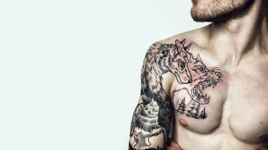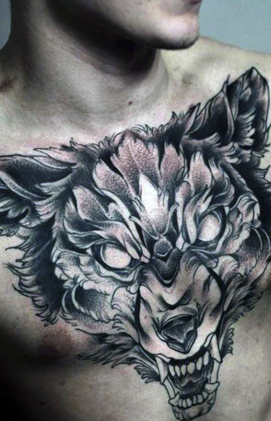 늑대의 전체모습, 옆모습 또는 늑대 머리부분이 가슴에 전체로 하거나, 어깨와 팔까지 더 확장하여 타투를 하기도 합니다.