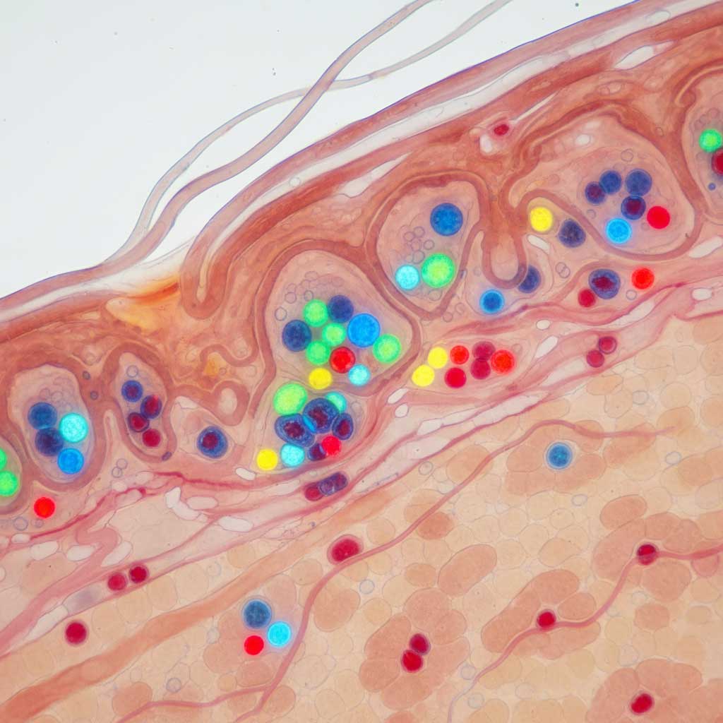 우리가 포토샵으로 디자인할 때 '레이어'를 나누는 것처럼, 우리 피부도 레이어가 있습니다. 맨 바깥쪽은 표피, 그 아래는 진피라고 불러요.