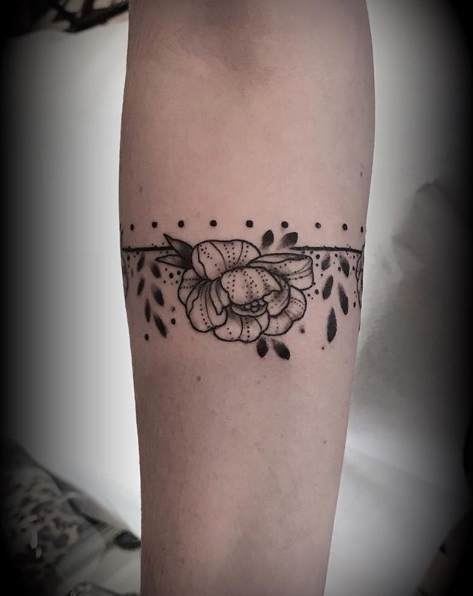 레이스 디자인과는 좀 다른 느낌인데, 동양적인 문양으로 패턴스타일로 약간의 점묘까지 들어간다면, 이 암밴드 타투는 신비로울수 밖에 없습니다.