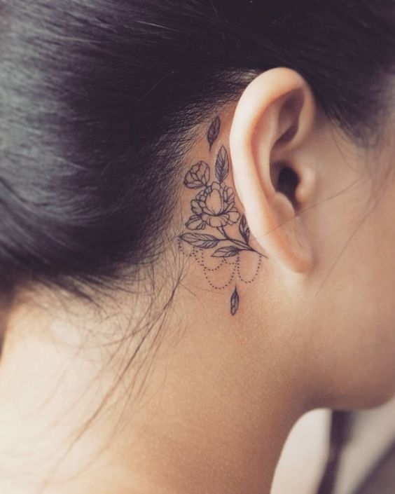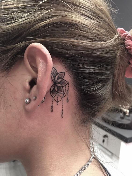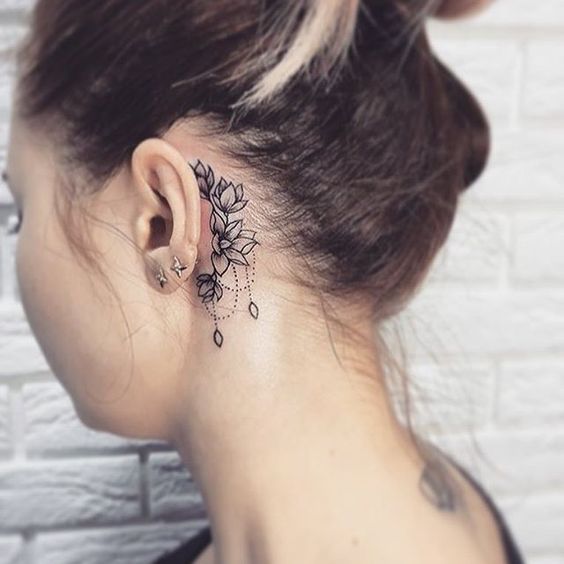 다양한 여자 귀 뒷부분 타투디자인 모음