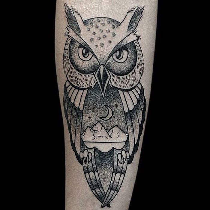 올빼미의 강력하고 다양한 상징 때문에 올빼미는 타투에 가장 많이 디자인되고 있습니다.