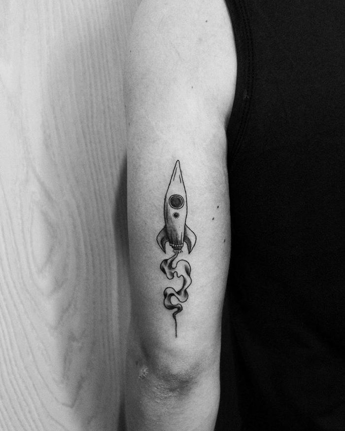 우주 탐사의 보편적인 상징인 로켓타투도안은 또한 무한한 지식, 모험, 그리고 진보를 상징할 수 있다.