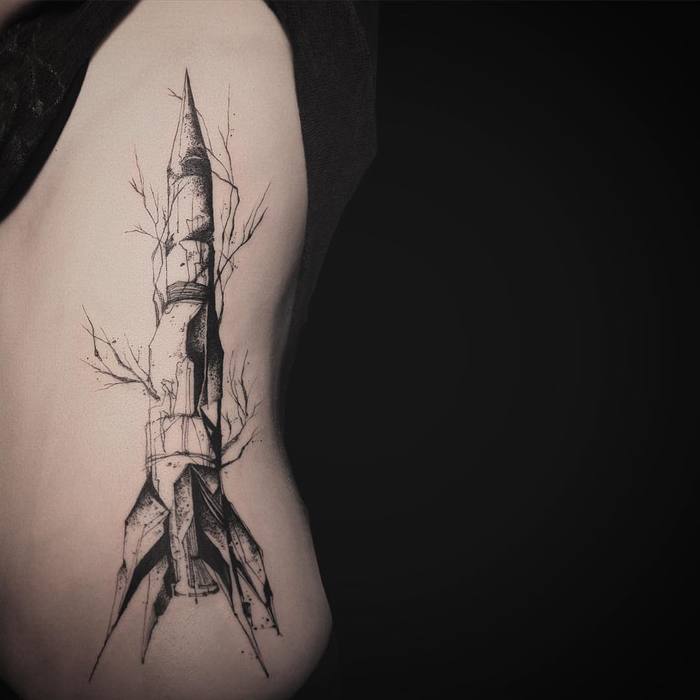 로켓 문신 디자인은 우주광들과 과학팬들 사이에서 인기 있는 선택이며 남성과 여성 모두에게 인기가 높다.