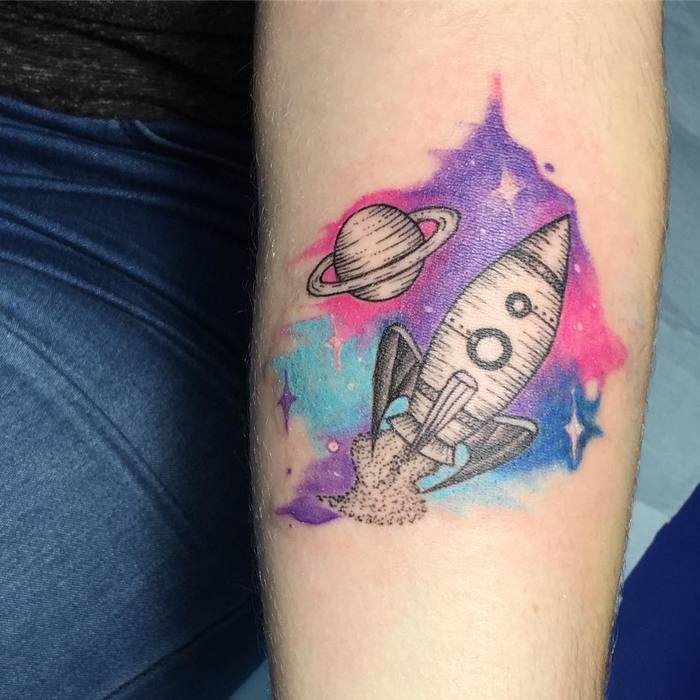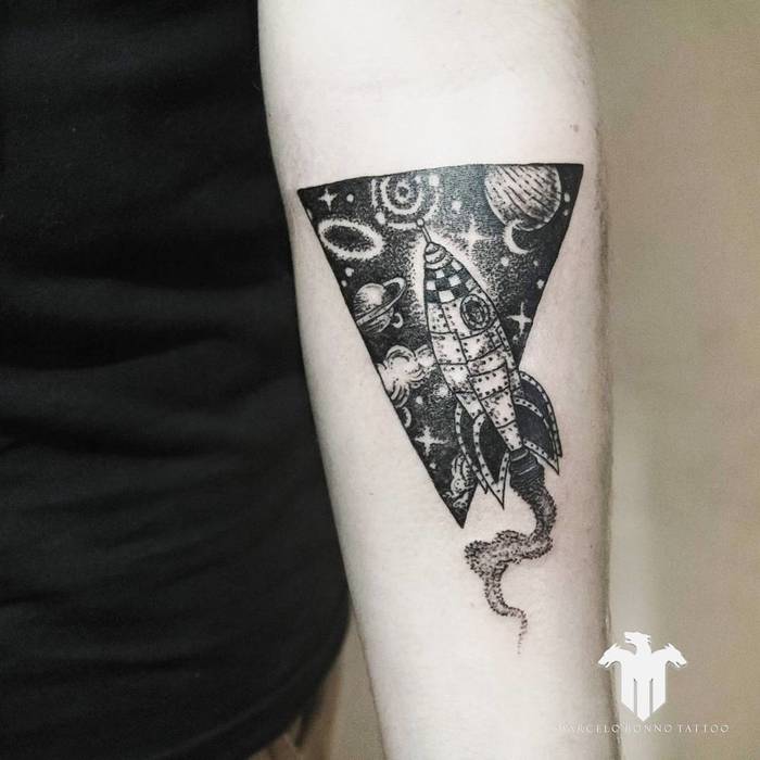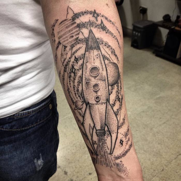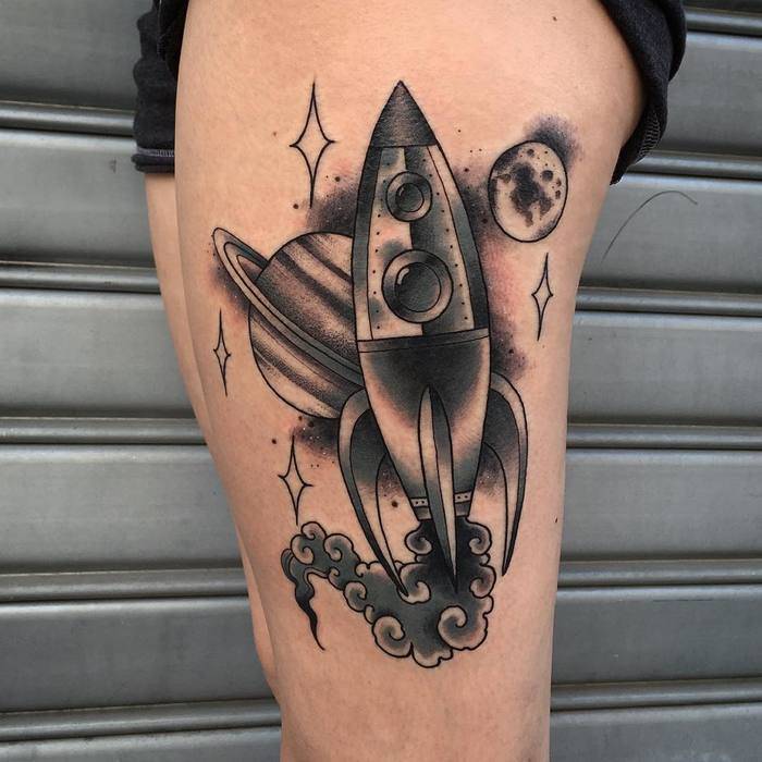 우주 탐사의 보편적인 상징인 로켓타투도안은 또한 무한한 지식, 모험, 그리고 진보를 상징할 수 있다.