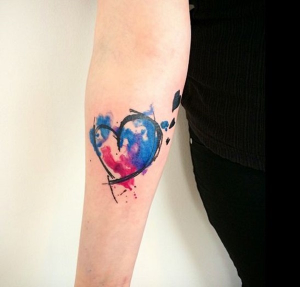 이러한 수채화 느낌의 하트 심장 타투도 넘 멋집니다. 요즈음에 나름 인기 있는 스타일이기도 해요!~