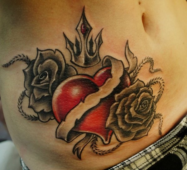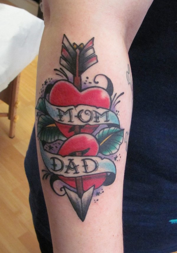 가장 일반적인 타투 스타일인 스쿨타투 스타일이예요!~ 게다가 리본의 글자가 심장의 살아있는 의미를 알려주는 것 같습니다.