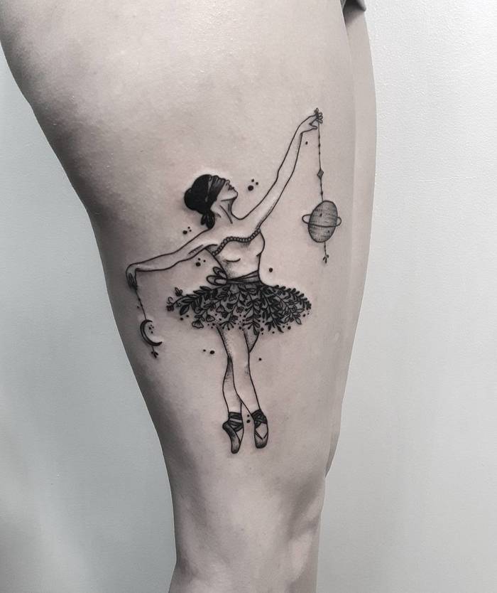 보통 춤과 밀접한 관련이 있는 사람들에 의해 선택되는 발레리나 타투는 가장 우아하고 매력적인 춤의 형태인 발레에 대한 에너지와 열정을 기린다.