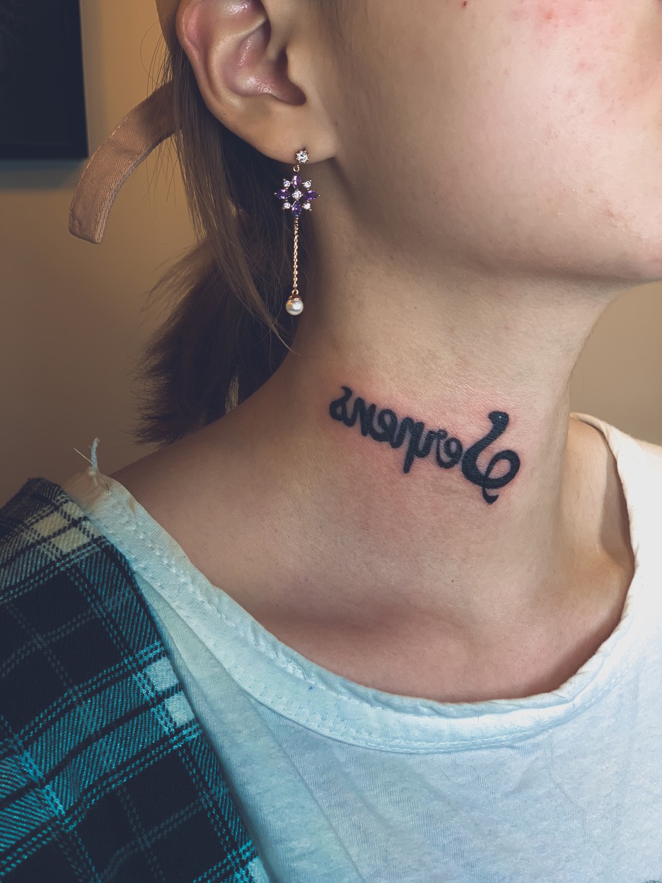 가끔 이렇게 목부위에 타투는 본인이 거울에서 밖에 볼수가 없기때문에 반대로 작업을 하게되는 경우가 종종있어요.