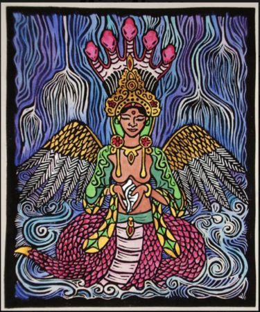 힌두 신화에서 Nagas는 지하 세계에 사는 뱀의 영혼으로, 어머니 여신의 가르침을 보호하고 제공합니다.
