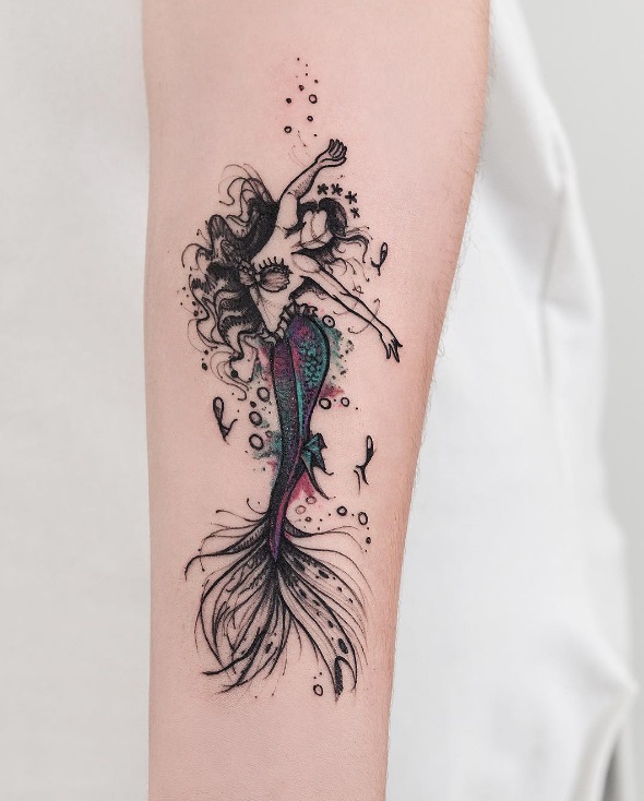 인어를 모티브로 타투를 하는 것은 인어에 내포되어 있는 신화적인 가치를 불어 넣을수 있거나 아니면, 아주 크리에이티브한 도안으로 새롭게 재탄생 하기도 합니다.