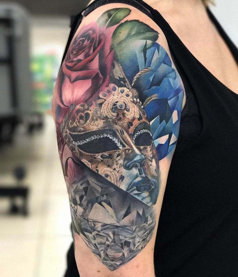 아름답고 신비로운 베네치아 가면은 타투이스트들과 리얼리즘 애호가(타투애호가)들에게 어울리는 세밀한 문신 디자인에 영감을 주었다. 가면 타투는 연극적인 면을 드러내고 인생의 비극과 희극을 모두 담아내는 극적인 방법이다. 신비와 유혹을 즐기든, 아니면 그저 잠깐이라도 드러내고 싶은 나만의 분신을 가지고 있든 베네치아 마스크 문신은 우아한 선택은 아니더라도 이것은 우리를 세련되게 만들어주는 것은 확실하다.