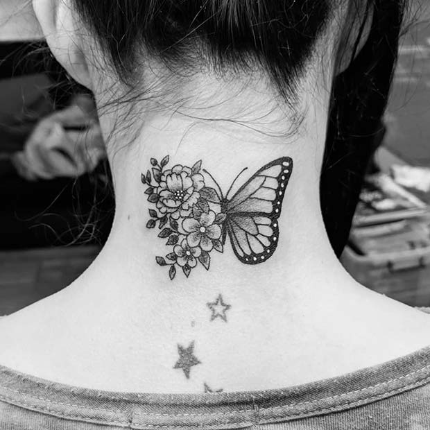 꽃과 나비는 너무 잘 어울리는 조합이다. 이러한 디자인은 목뒤에 할경우... 머리카락으로 가리거나, 길이에 따라 아주 색다른 느낌을 준다.