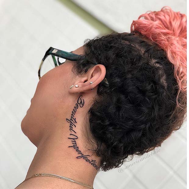 이렇게 심플한 레터링 타투도 당신을 좀 더 색다르게 보이게 하기도 하고, 때에 따라 머리로 가릴수도 있다.