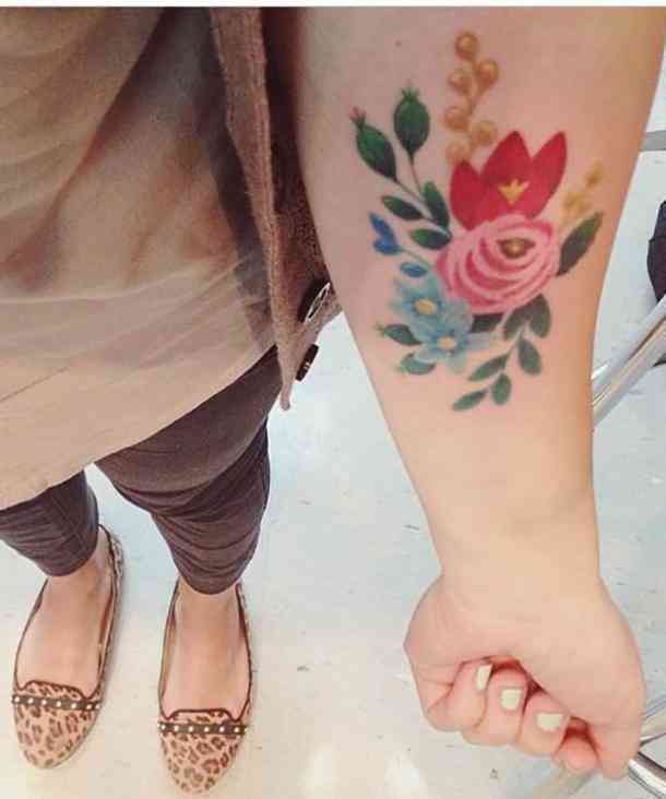 소매를 걷어야 보여지는 이 부위의 꽃타투는 은근히 매력적이고 더욱 섹시하게 보이게 하죠!~ 이러한 사이즈와 칼라와 모양의 타투도안은 손목, 발목, 팔 안쪽에서 더욱 돋보이게 됩니다.