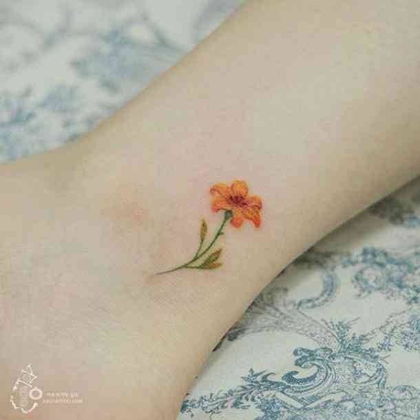 여자분들에게 발목 바로 위의 타투는 세련되고 섹시하고 그저 이쁠뿐이죠!~ 꽃의 색깔은 원하는 것으로 선택할 수 있습니다.