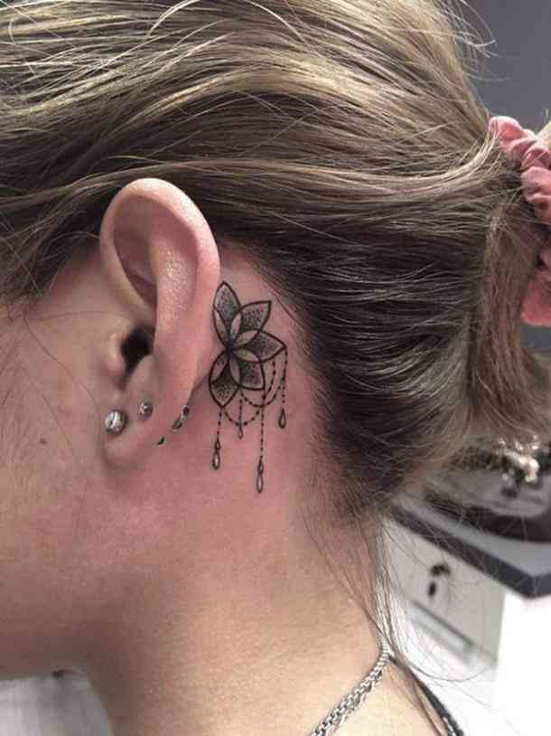 귀 뒤쪽의 타투스타일인데요~ 엄청 세련되어 보입니다. 게다가 꽃도 반만 디자인되어 있어요!~ 아주 감각있어요!~