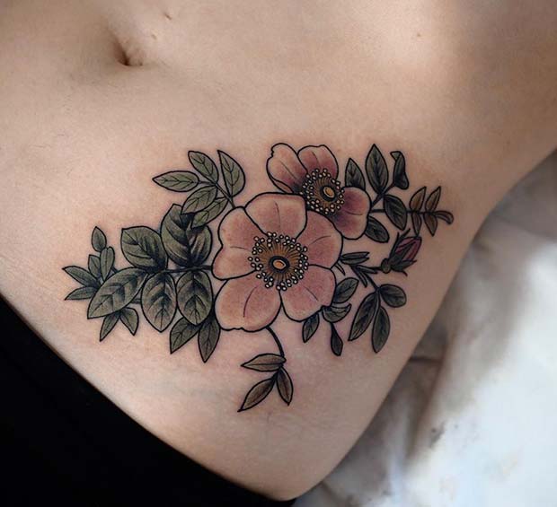꽃은 여성들에게 인기 있는 문신 디자인이다.
