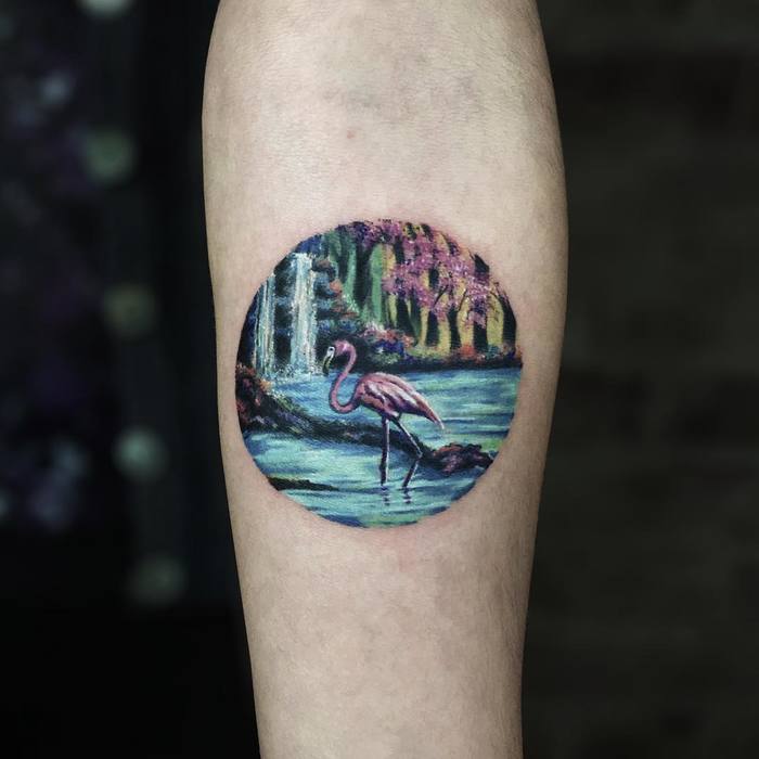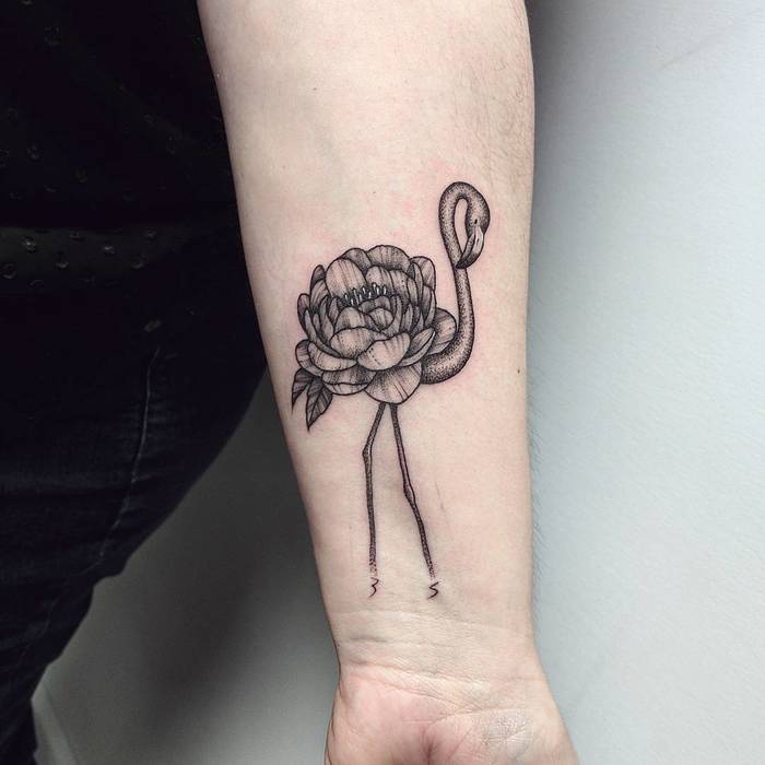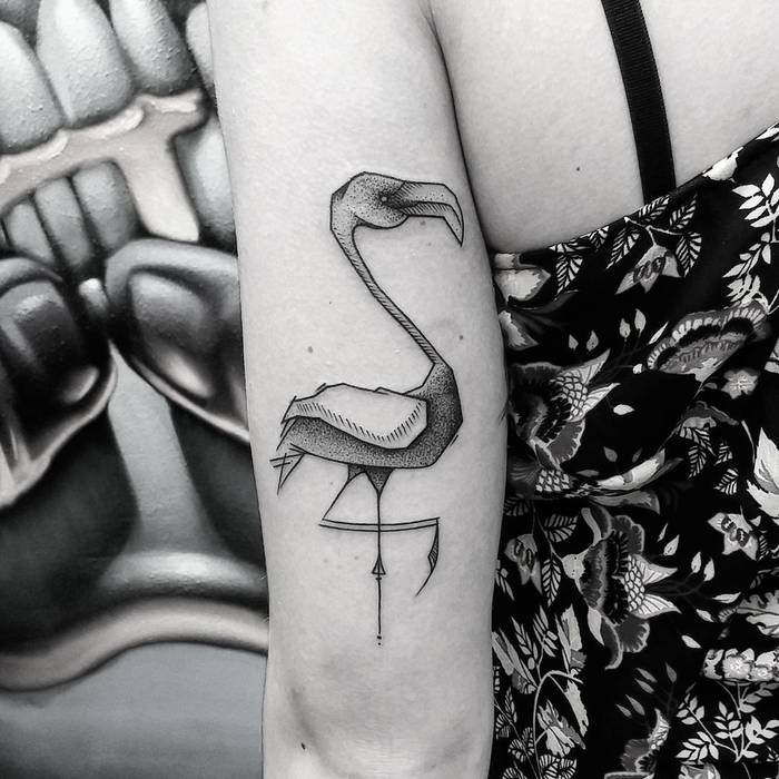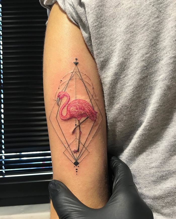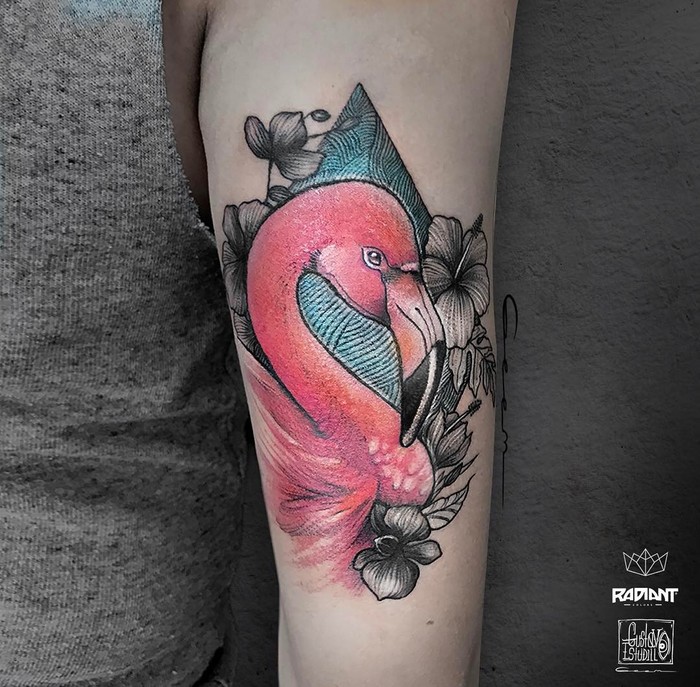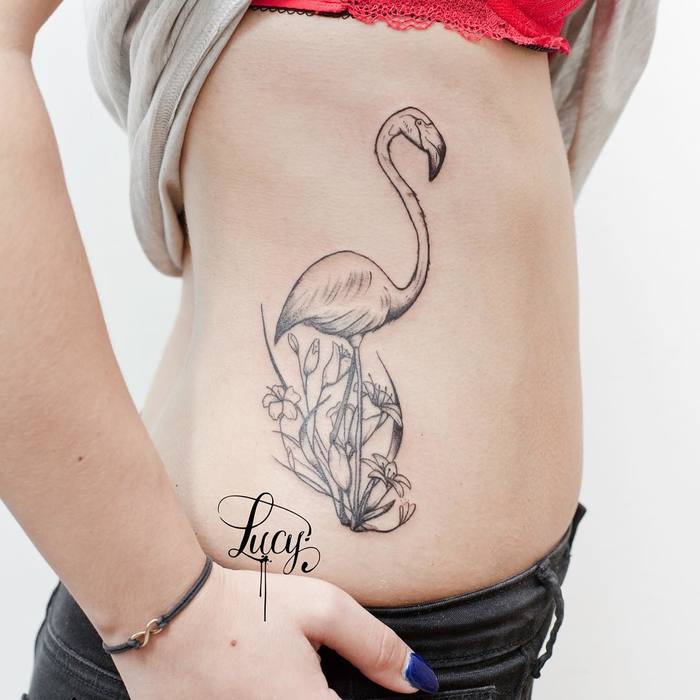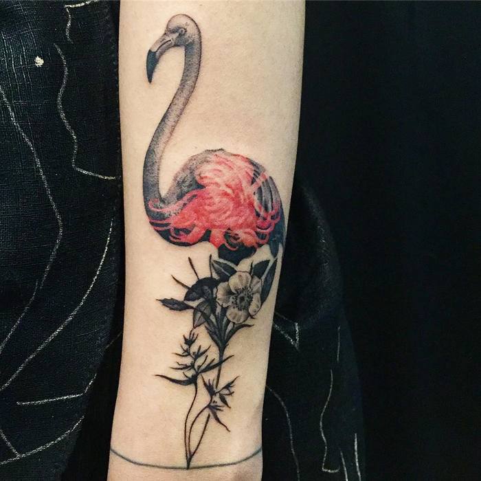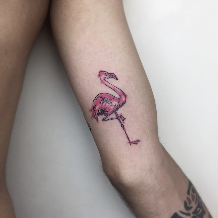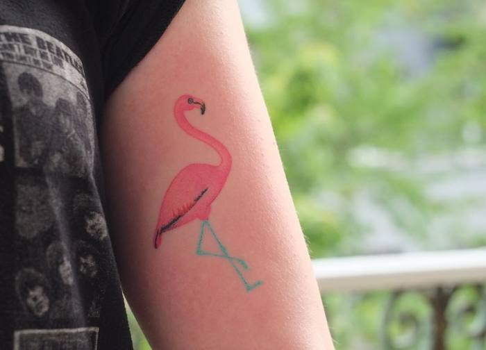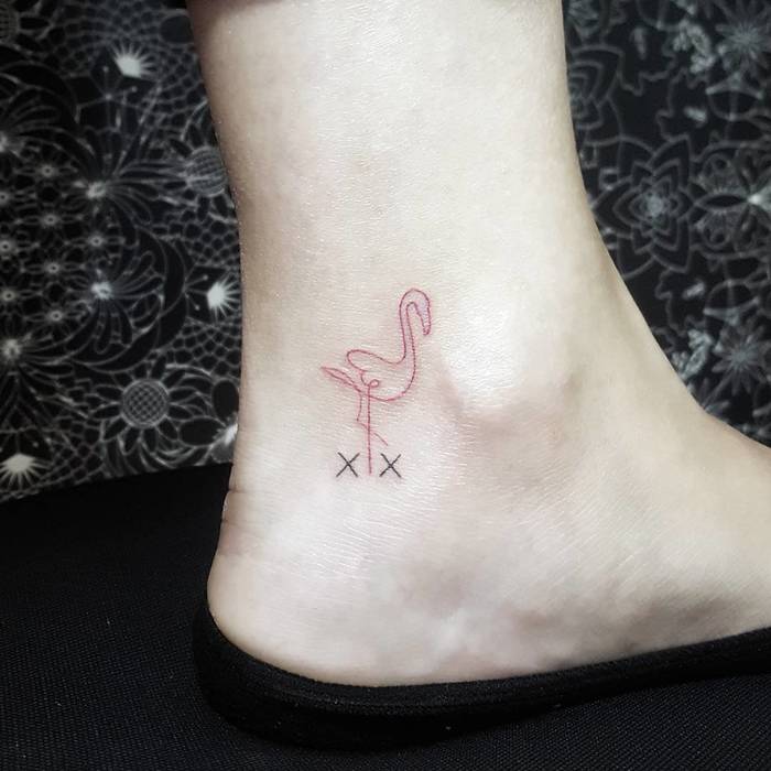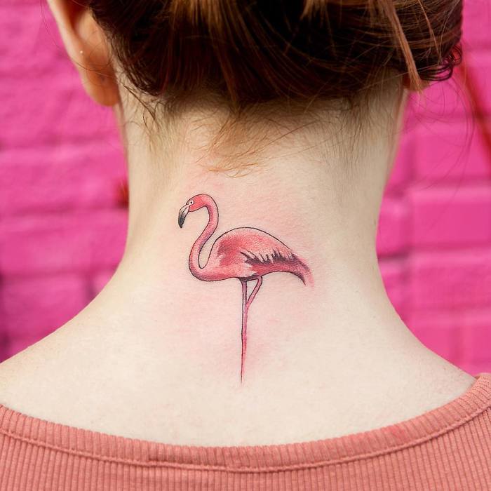 플라밍고 타투 디자인은 섬세하고 이국적인 외모, 색깔, 상징성 때문에 여성들 사이에서 꽤 인기가 있다.