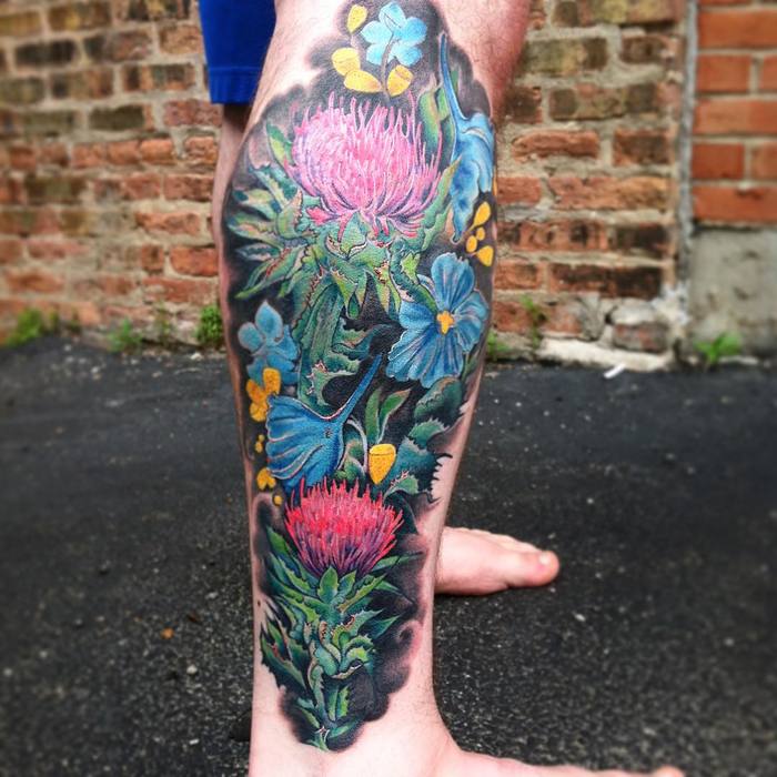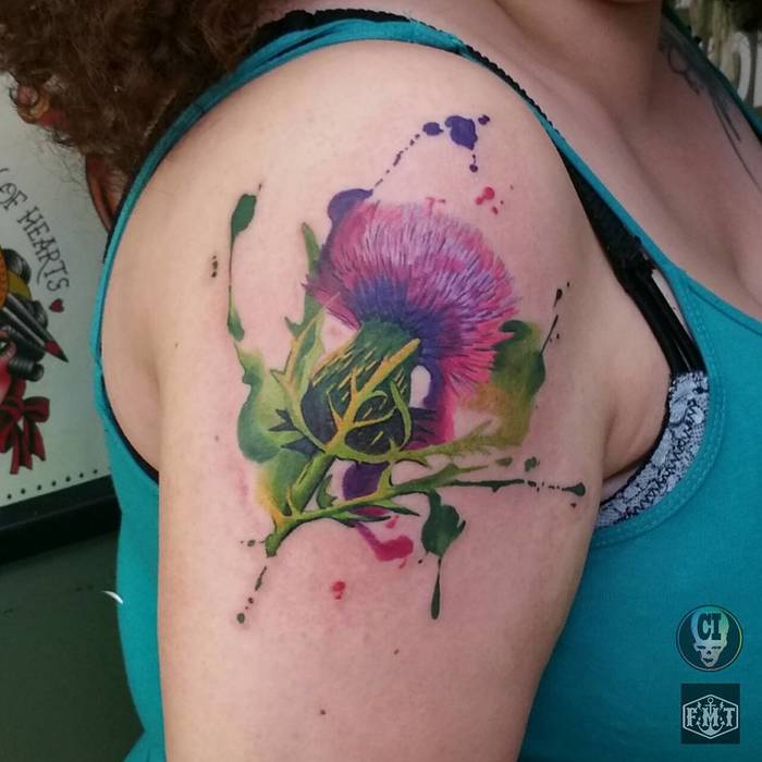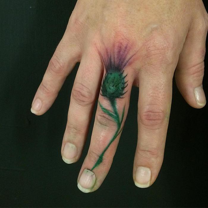 엉겅퀴는 다른 문화권에서 거친 외형적 모습에 많은 상징적 의미를 지닌 식물로서, 타투를 위한 주목할 만한 디자인을 이루고 있다.