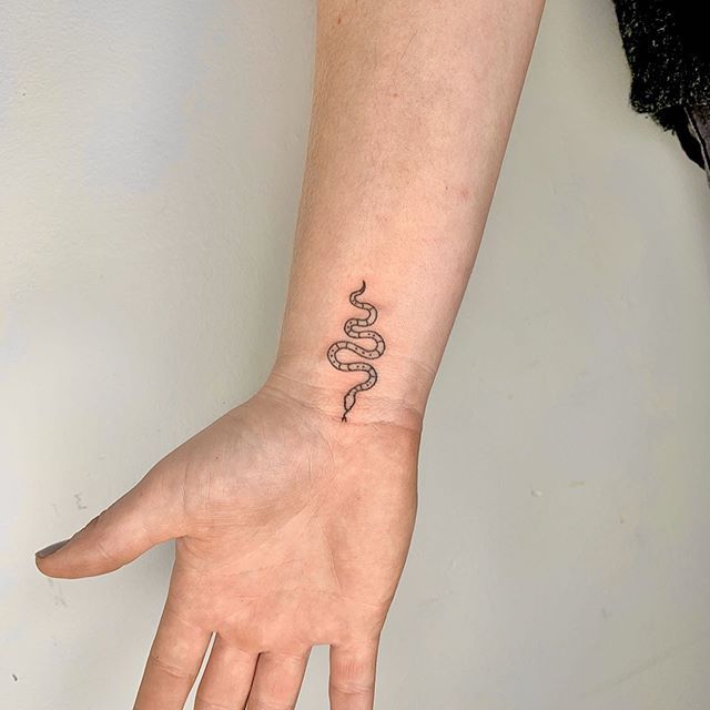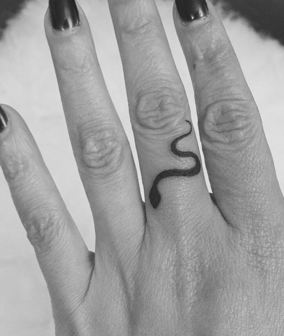 한 뼘이 되지 않는 사이즈에 라인으로 된 뱀타투, 심플한 라인만으로도 그 이미지와 느낌은 강렬하다.