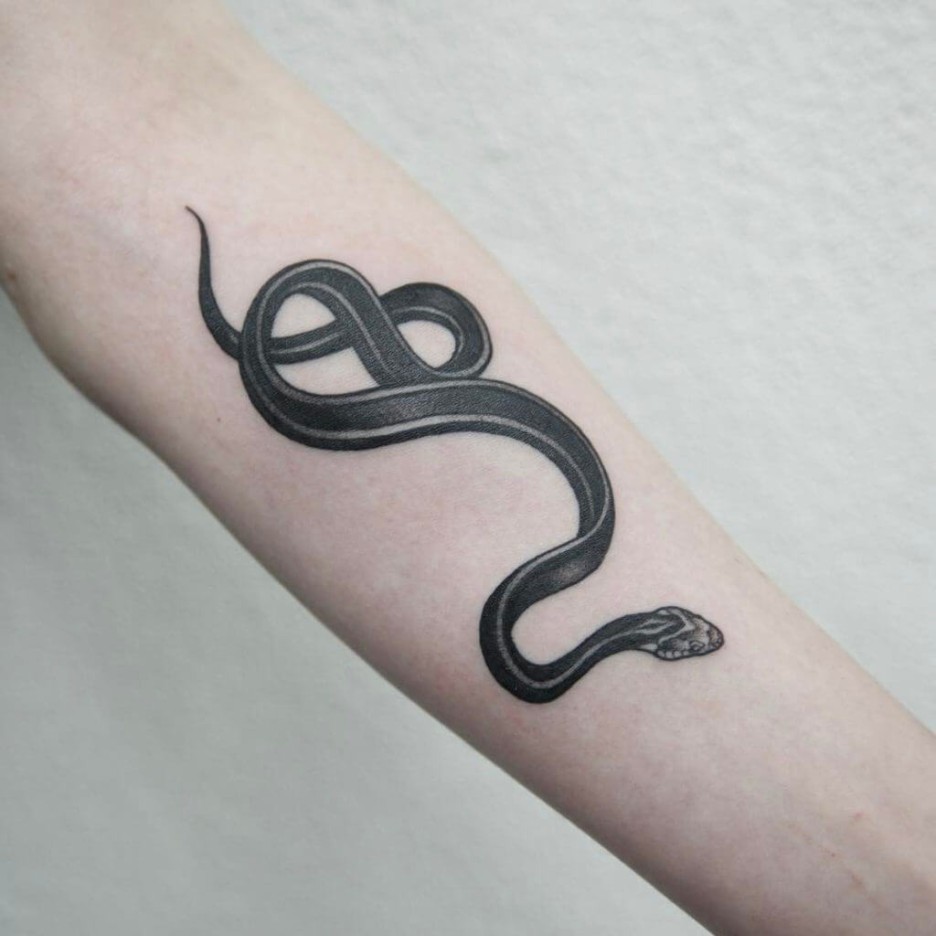 꼭 뱀타투의 도안이나 디자인이 사실적이거나 매우 매력적인 모습을 가질 필요는 없다. 약간의 낙서 같은 느낌의 뱀타투 역시... 자연스러운 느낌과 이미지로 많은 사랑을 받는다.