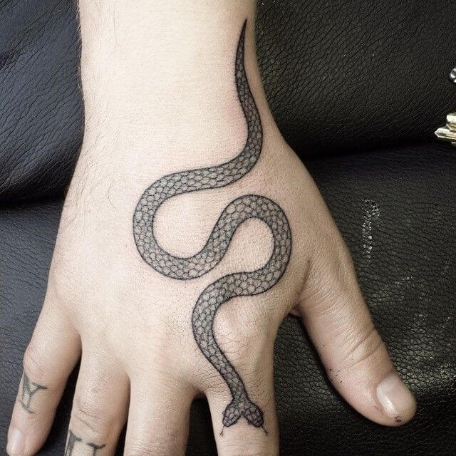 그리 크지 않지만, 손부위에 타투는 정말 매력적이다. 아주 작지만 특히 빨간색이 들어간다면... 작지만 우아하며 고결한 뱀타투가 된다.