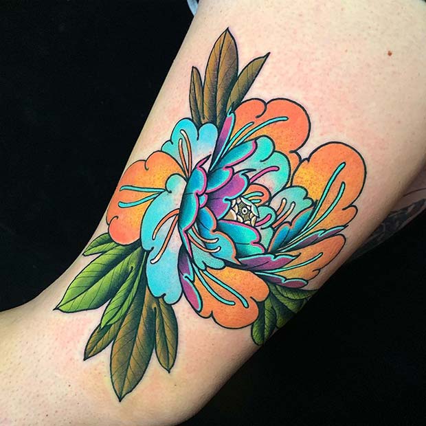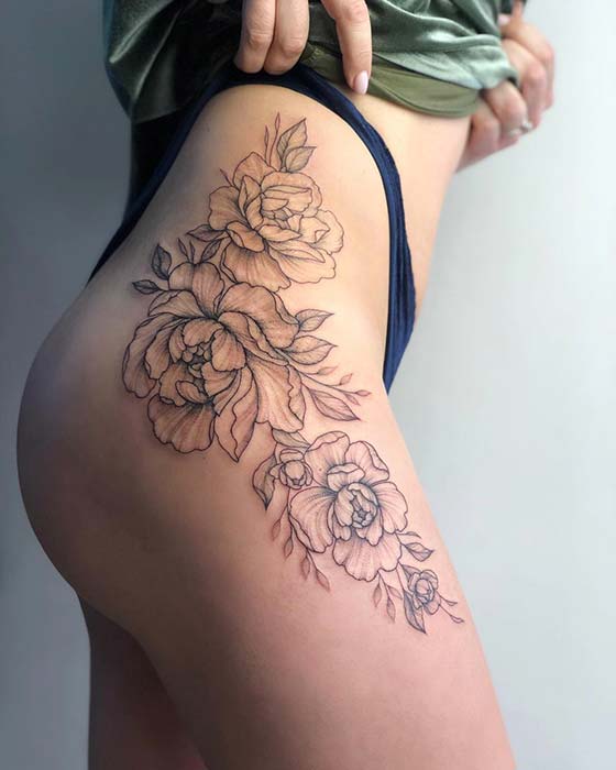 모란타투는 꽃타투중에서 복잡하면서 우아한 아름다움을 가지고 있고 장미타투만큼 인기가 높은 꽃타투중 하나이다.