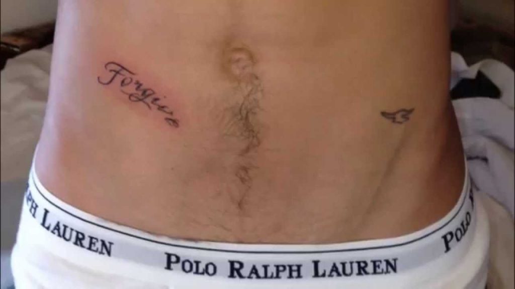 치골부위의 날아가는 새라인타투가 있어요. 2010년 3월 처음으로 타투를 새겼다고 하네요.