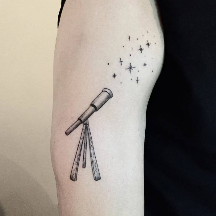 당신의 선호도에 따라, 망원경타투는 현실적인 스타일, 매우 미니멀리즘 또는 만화로 다양하게 표현될 수 있다.