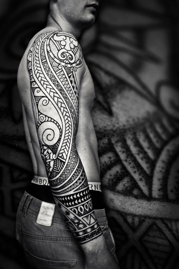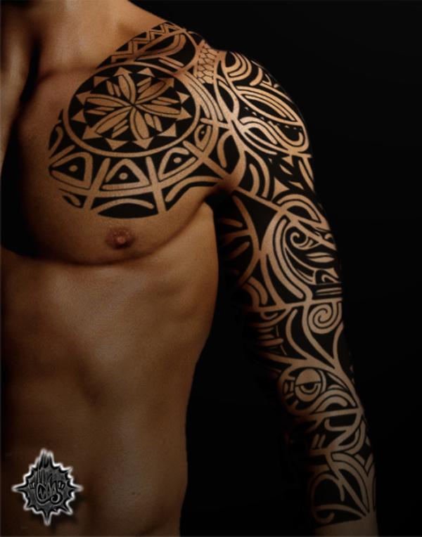 많은 사람들은 이 신체 부위에 있는 부족 문신에 놀란다. 어깨와 팔은 힘과 용기를 나타내는 남성적인 디자인에 가장 좋은 위치다.