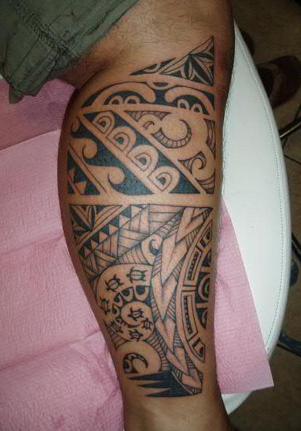 폴리네시안 문신 디자인에서는 종아리, 하퇴부 앞다리, 전퇴부 문신이 인기 있는 장소다.