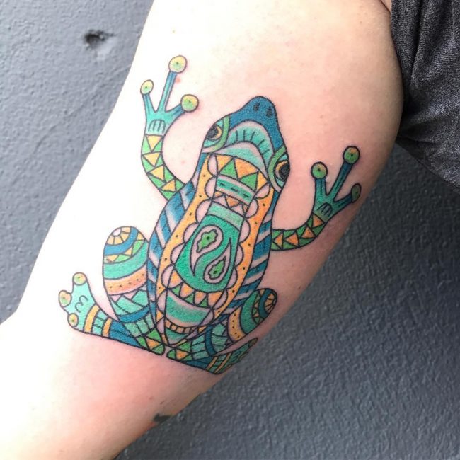 개구리의 세부사항과 사용된 개구리의 종류는 문신마다 다 다를것이고, 대부분은 많은 행복을 상징하기 위해 사용되어져 왔다고 본다.
