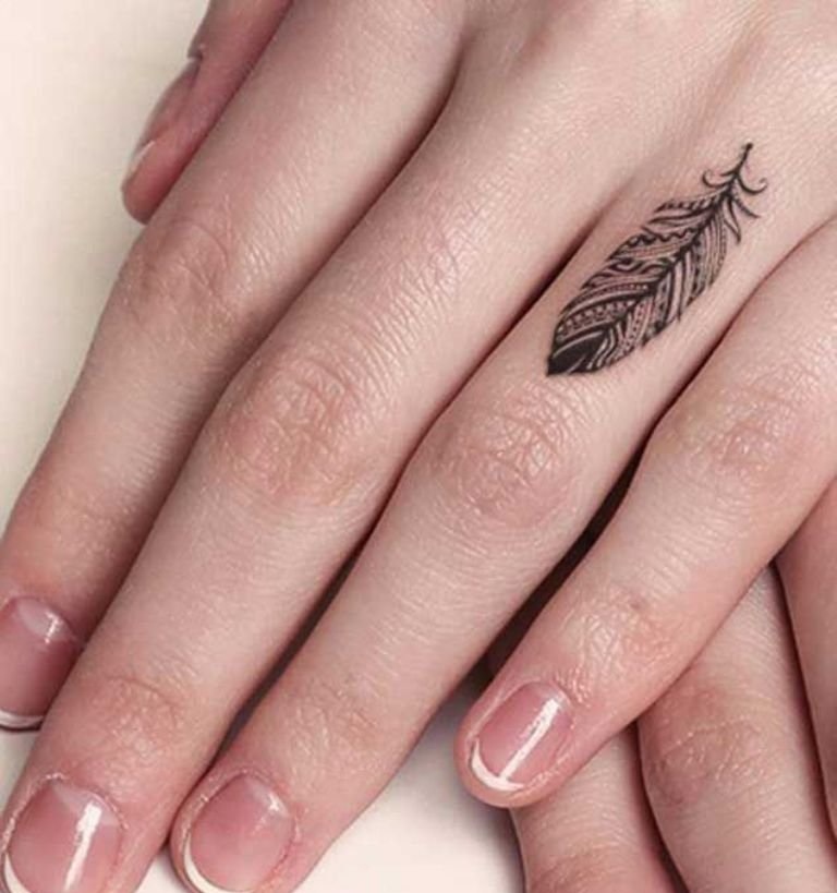 손가락에 새겨진 깃털 문신은 자주 선호하는 문신으로 다양한 크기와 모양으로 만들어질 수 있다.