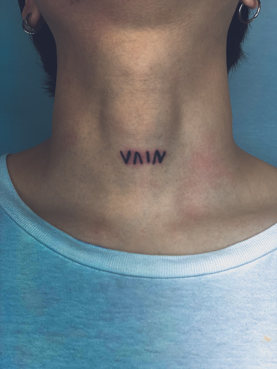 이것은 남자 목부위 레터링 타투를 작업한 것이예요.