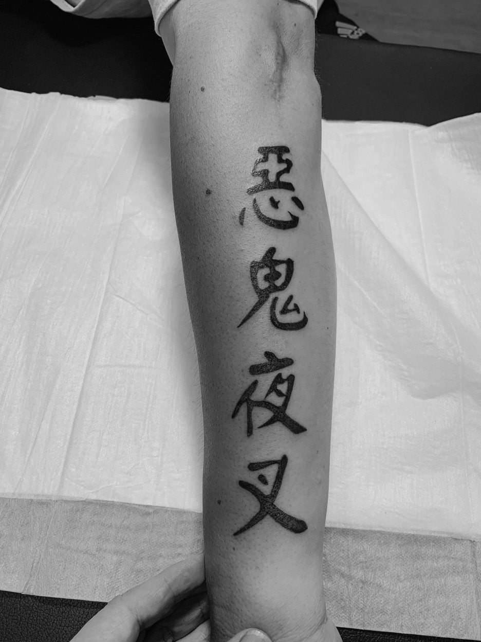 좋아하는 사자성어를 팔에 한자레터링으로 하셨어요~~