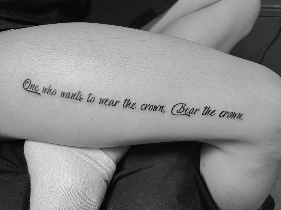오른쪽은 남자 허벅지를 따라 레터링타투를 하셨어요~