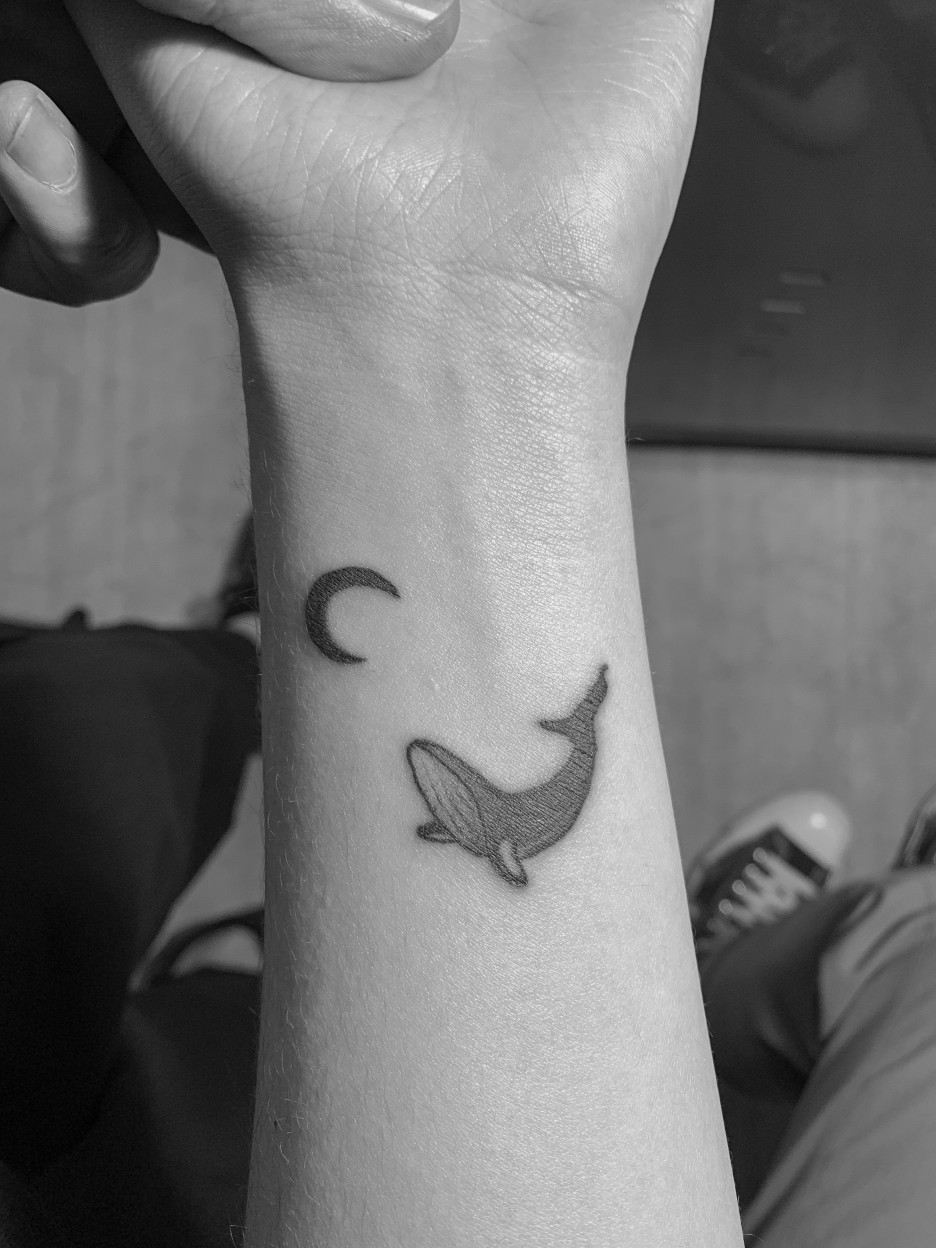 초승달과 고래는 타투도안의 소재로 정말 많이 찾으시는 것들 중의 하나예요~ 심플한 라인타투도 매력적이게 보일수 있습니다.