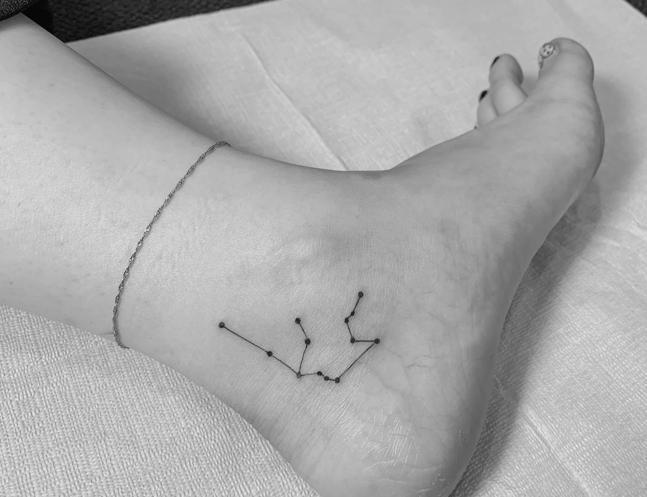 여자발목 약간 아래로... 별자리타투... 심플한거 좋아하시면 이러한 별자리타투도 추천해 봅니다.