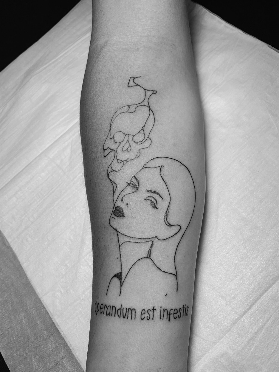 라인타투와 레터링타투를 함께....