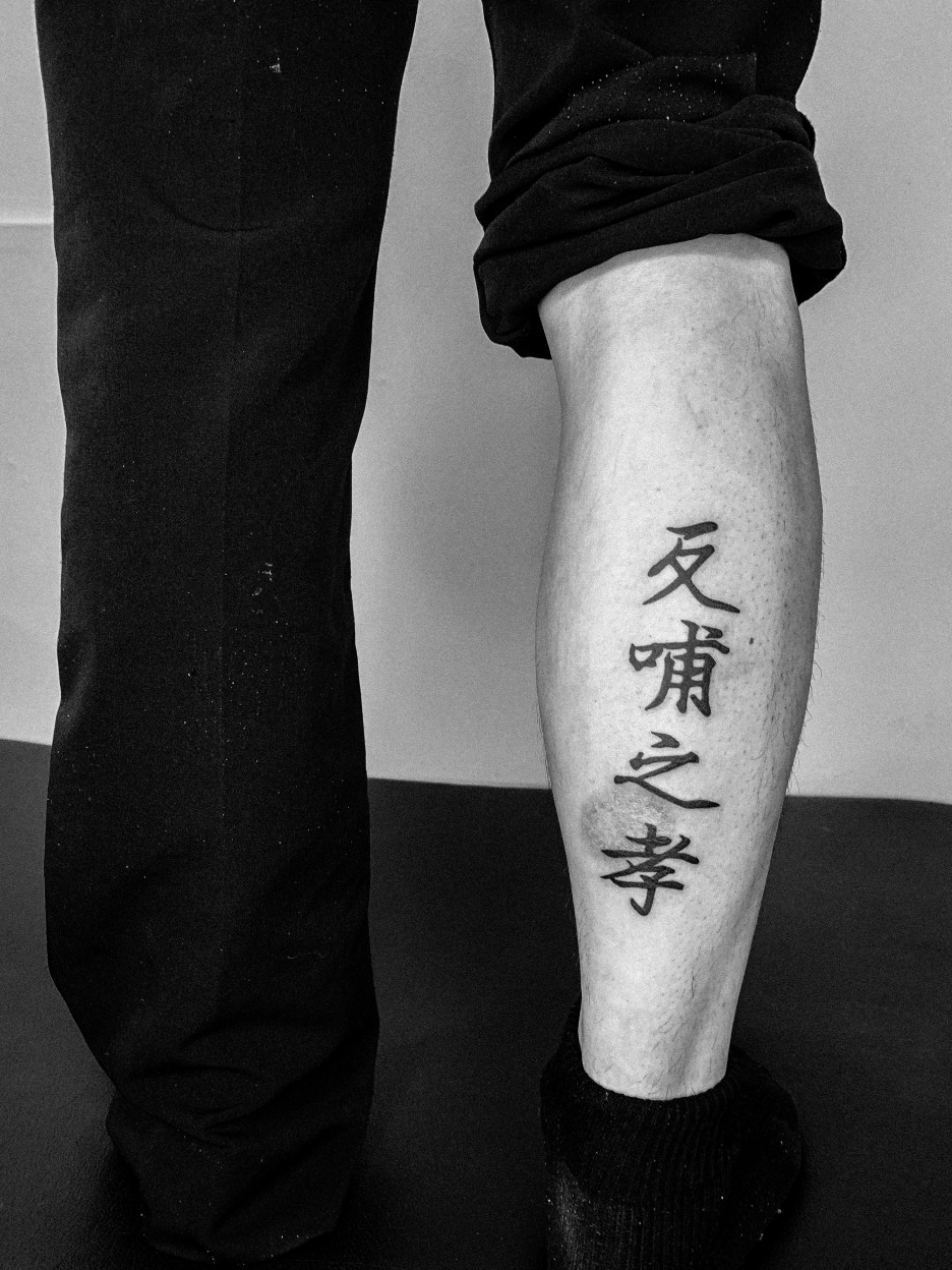 한자레터링타투 작업이예요~ 남자 종아리 쪽에 흉터가 있는 부분을 좀 더 잘 안보이도록 하면서 작업을 하였습니다.