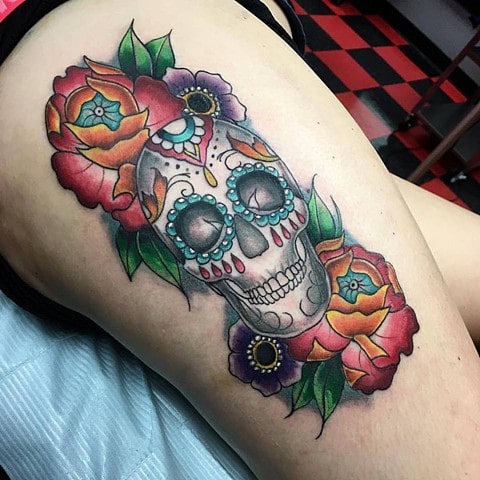 장미로 된 스컬타투는 보통 손, 발, 등에 많이 새겨져 오고 있다.